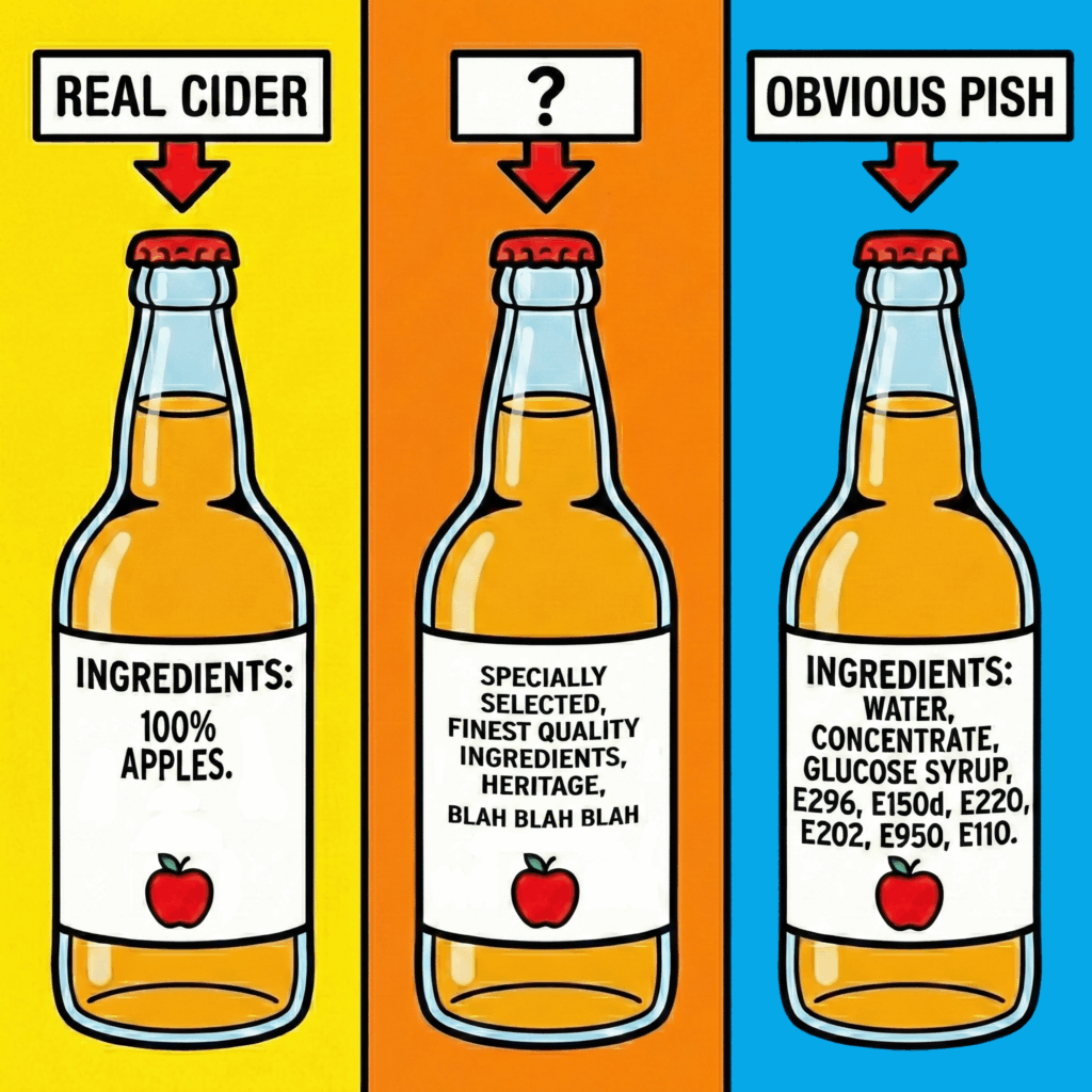 All ciders are not made equal. Yet, if two hypothetical bottles sat side-by-side on a supermarket shelf, how would a drinker tell the difference?